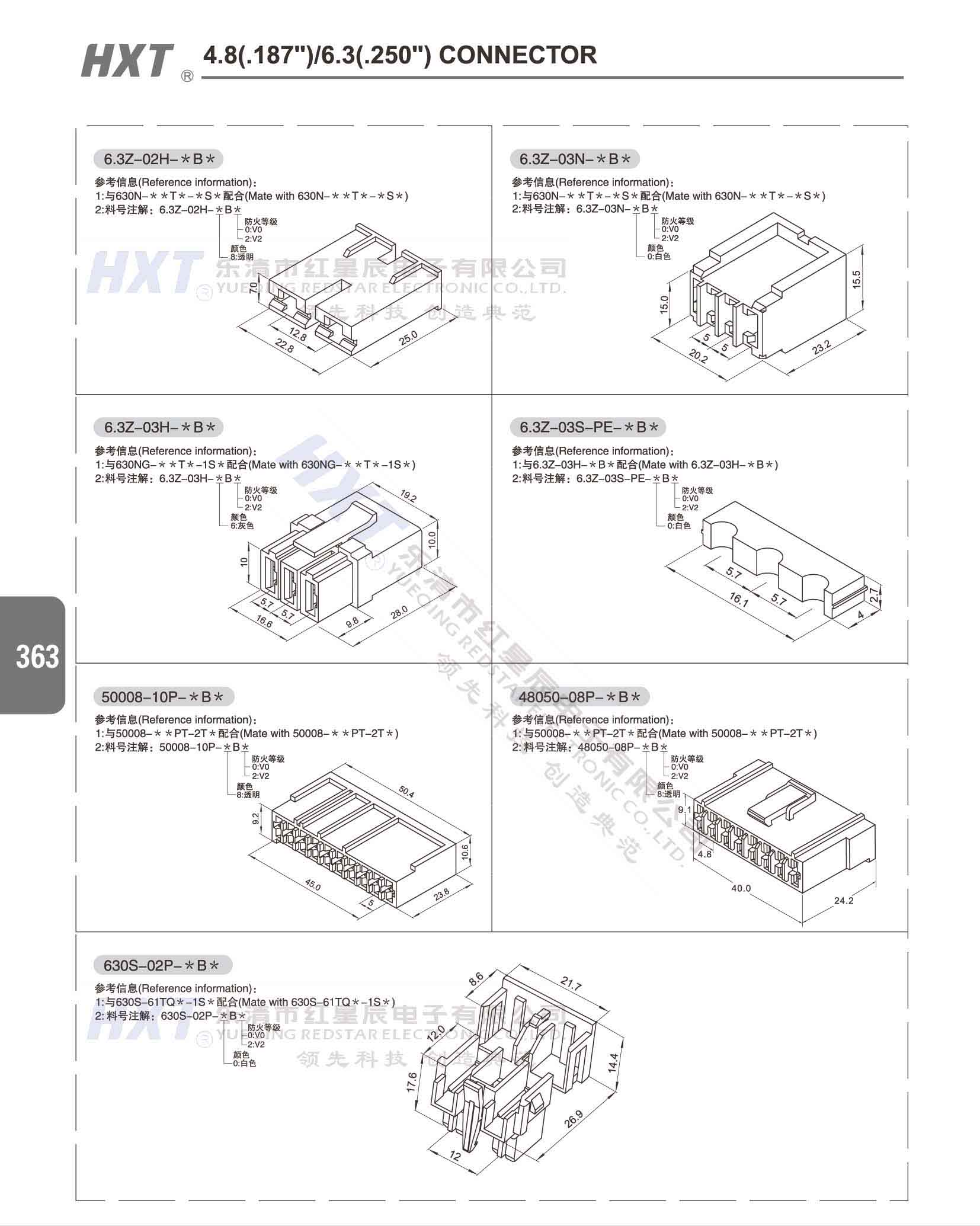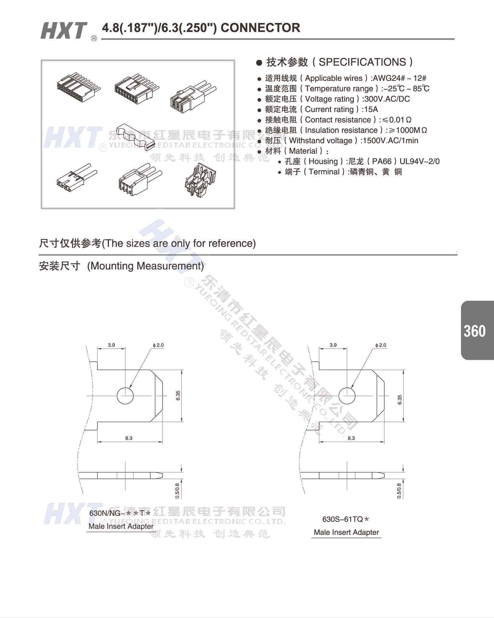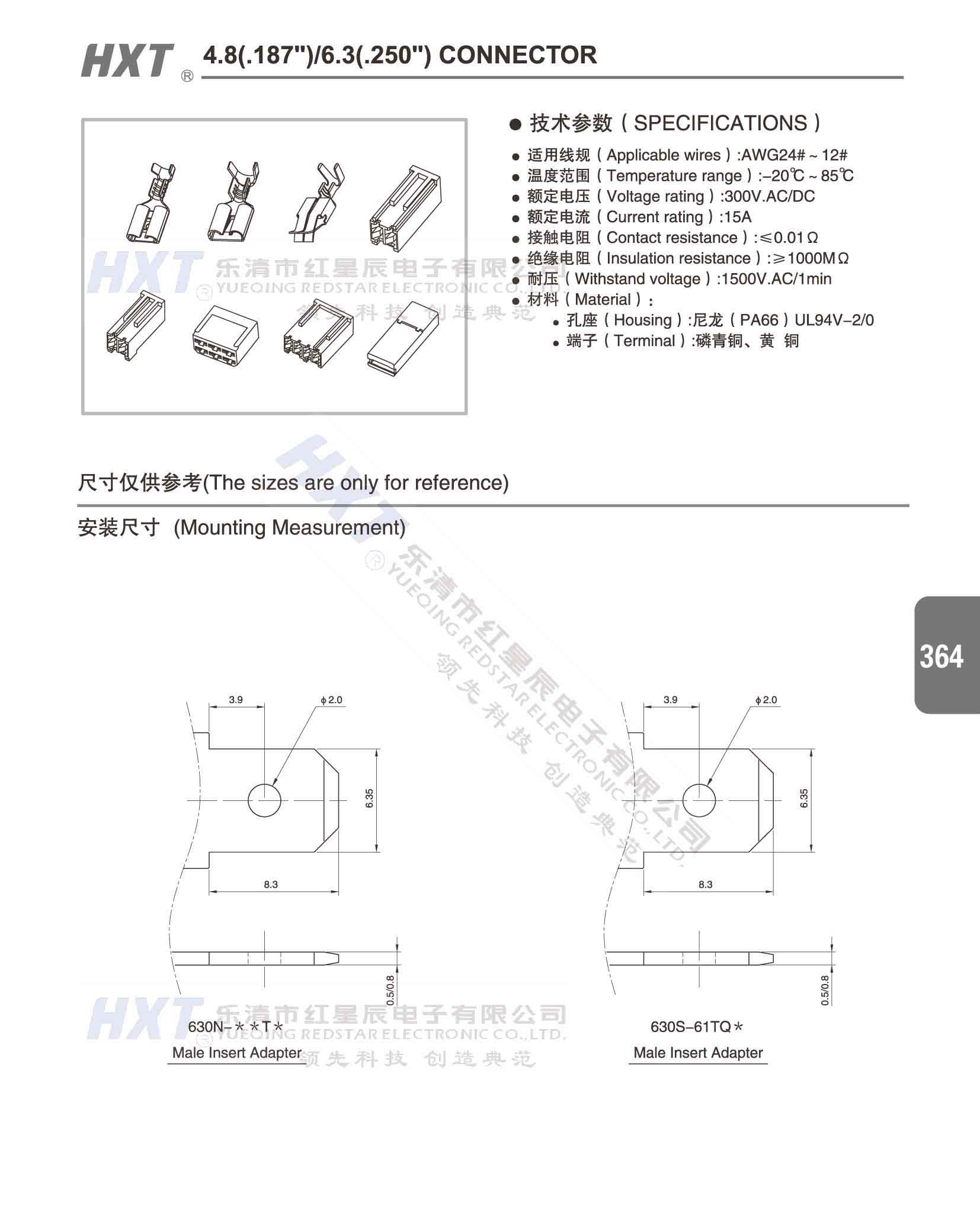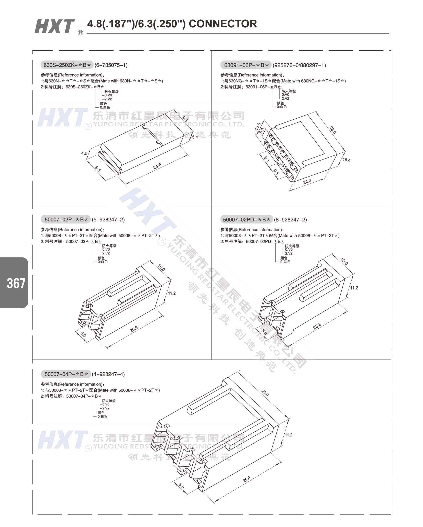 4.8(.187) /6.3(.250) 洗衣機連接器