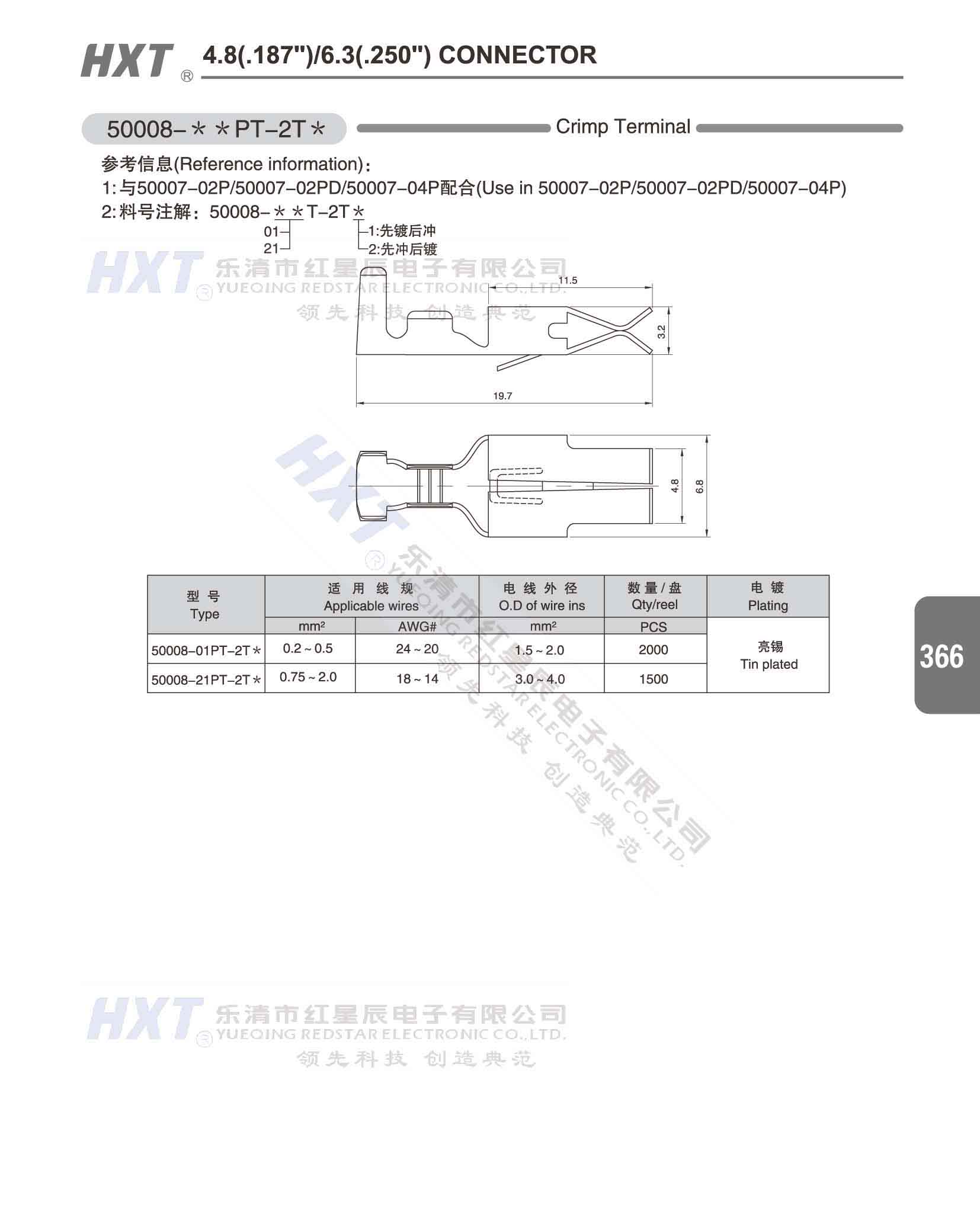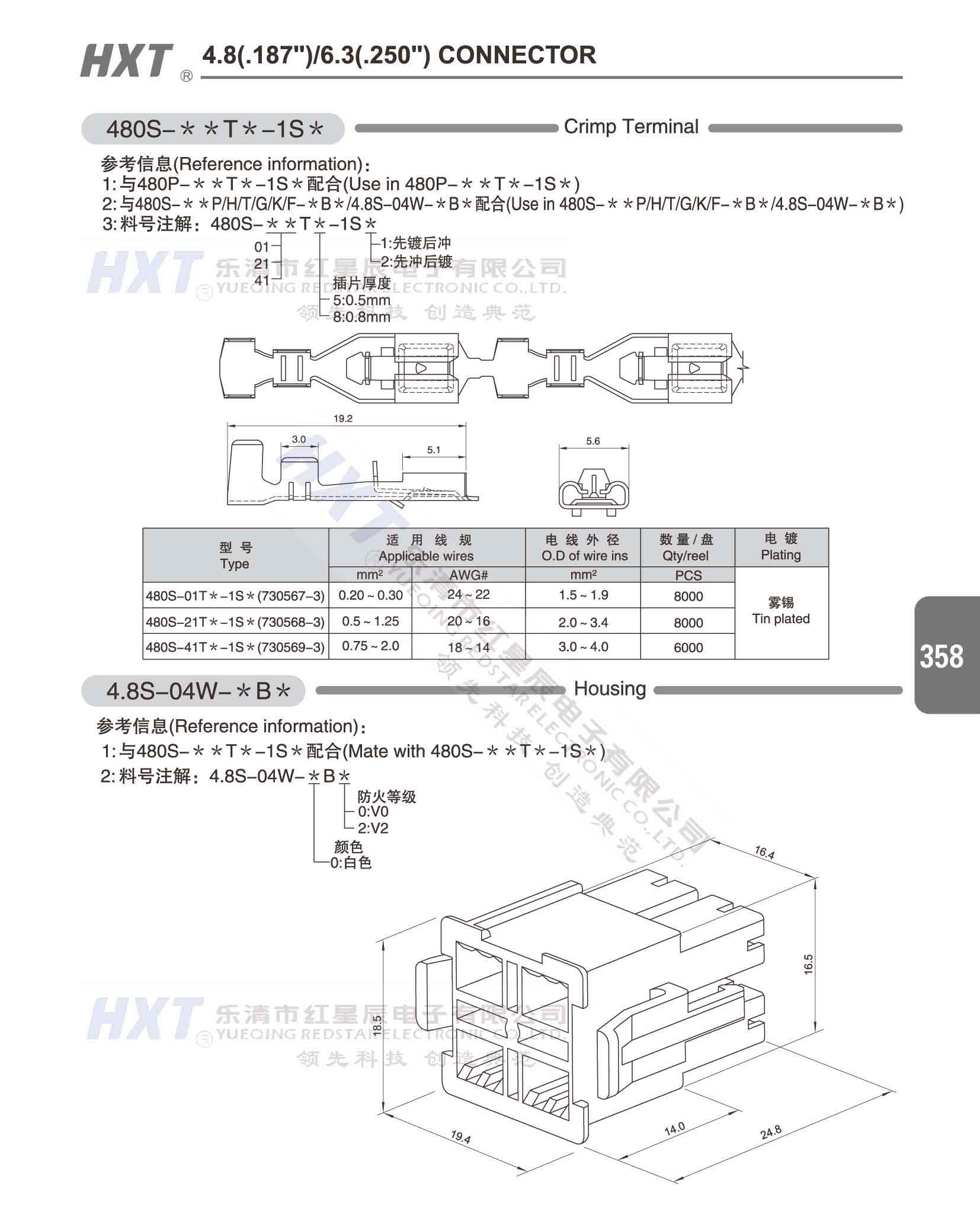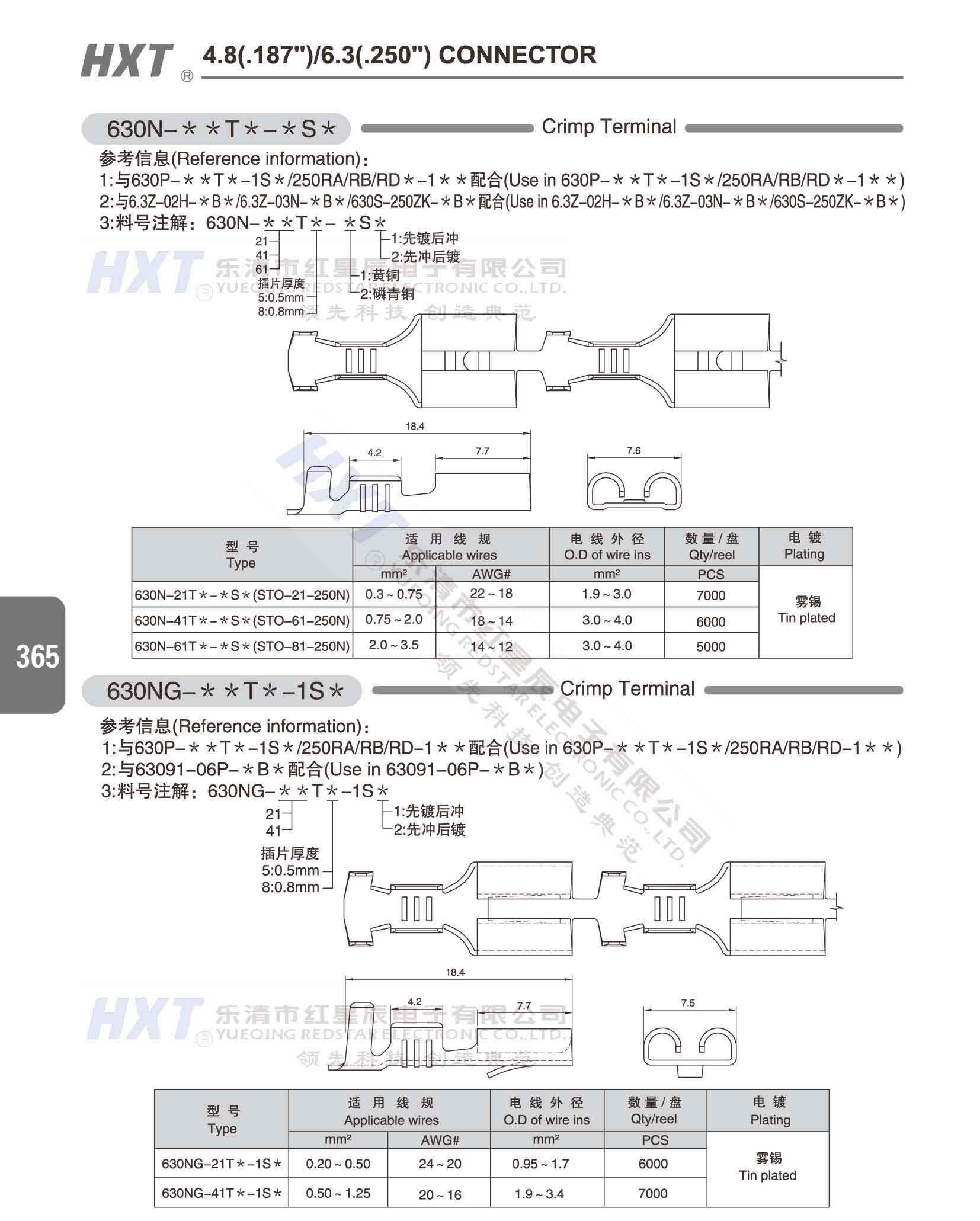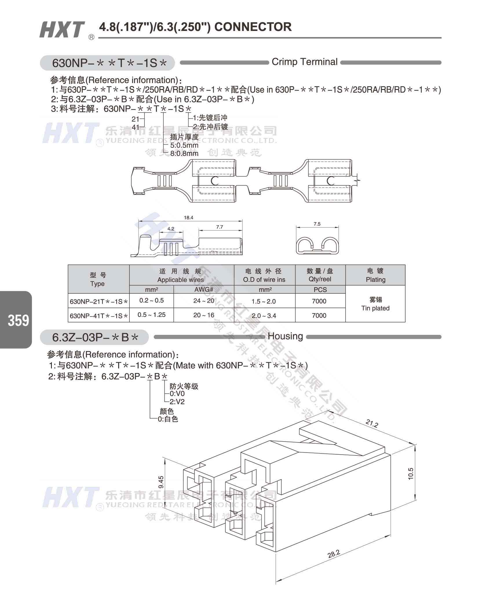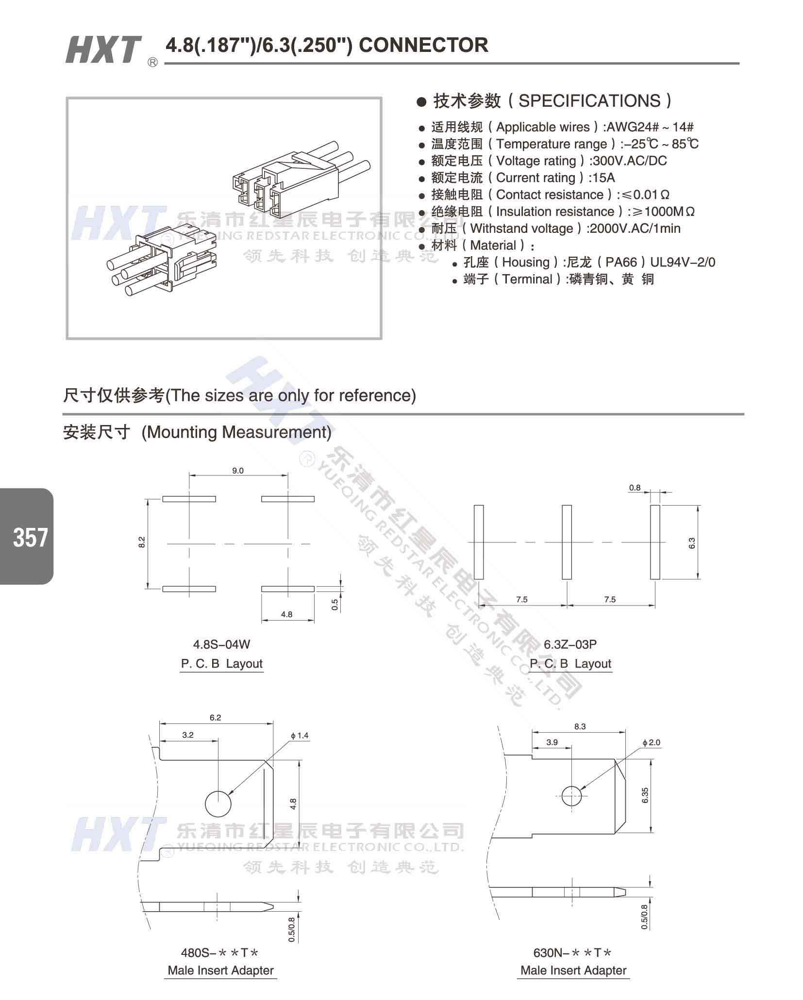 4.8(.187) /6.3(.250) 洗衣機連接器
